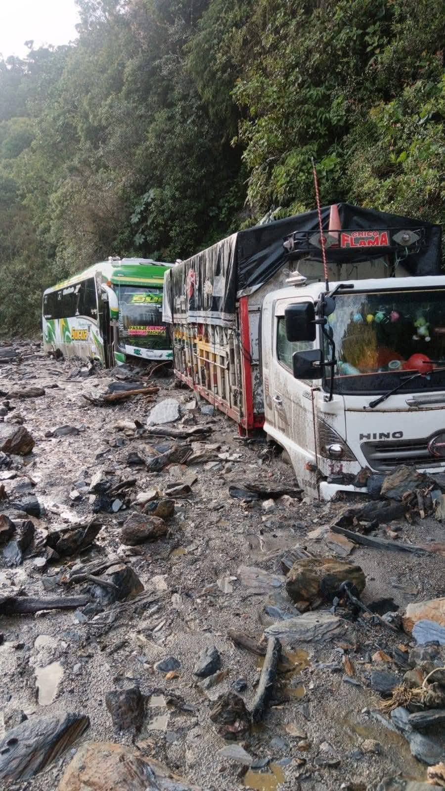 #ATENCIÓN #Urgente Un grave deslizamiento bloqueó la vía #Gualaceo – #LimónIndanza, cerca del Plan de Milagro. Hay dos vehículos que quedaron atrapados. No se registraron